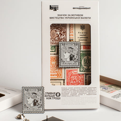 Значок ШАГИ – это яркий элемент коллекции, созданной по мотивам украинской валюты. Его дизайн вдохновлен историческими денежными знаками, ставшими частью культурного и экономического наследия Украины. Компактный значок прекрасно дополнит одежду, сумку или рюкзак, придавая образу индивидуальности и патриотической выразительности.